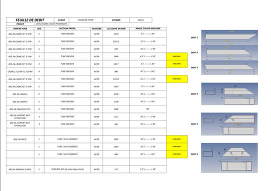 - fourniture plans de fabrication, fichiers de découpe DXF, fiche de débit et fiche achats